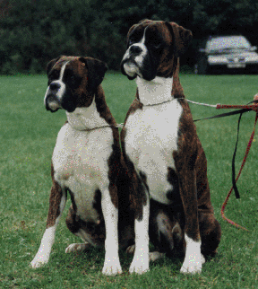 Ch. Raffles and his son Ch. Mitchum as a youngster, Mitchum was made up shortly before leaving for Australia where he was an influential sire. He sired Ch. Fletcher for us before leaving for the Antipodes.