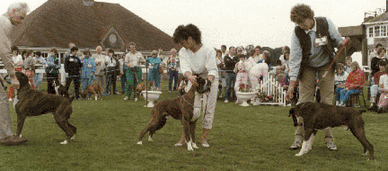 When we mated Mustang Wine to Night Rider we hoped for a 'big brindle male'. She gave us everything we wished for and more in 'Buster' with the added bonus of his beautiful red brother Ch. Glory Boy who was sold to Barbara and Philip Greenway. These two attracted a lot of attention when they hit the ring in 1981 and changed places on many occasions during their show careers. Buster won his first