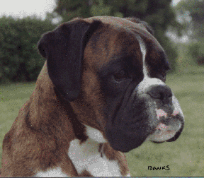 Mitchum was one of the prettiest puppies we've had in our kennel! He had an exquisite head, well defined chin without being too undershot and had the darkest of eyes. He was never destined to go abroad but a friend of ours, Bob Tyrell who lived in Perth, W. Australia, visited us in 1989, liked the look of Mitchum and when he went back home rang to ask if he could buy him. We thought long and hard about this as Mitchum was doing a fair bit of winning and already had a CC and a couple of RCCs. After much soul searching we finally agreed; However, we agreed to keep him here until the summer of 1990 as it would be cooler in Australia for him to acclimitise. We didnt tell anyone of his impending exportation as we thought it might hamper his chances of ever getting made up and at his very last show in this country under breed specialist, Brenda Groves, he was awarded his third and qualifying CC.