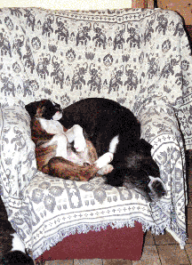 Showbiz relaxing with his great great grandfather Fletcher |